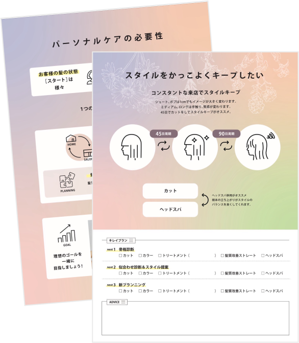 また、今後のお客様にとって理想の髪質になるデザインも含めた髪質改善プランニングをさせていただきます。